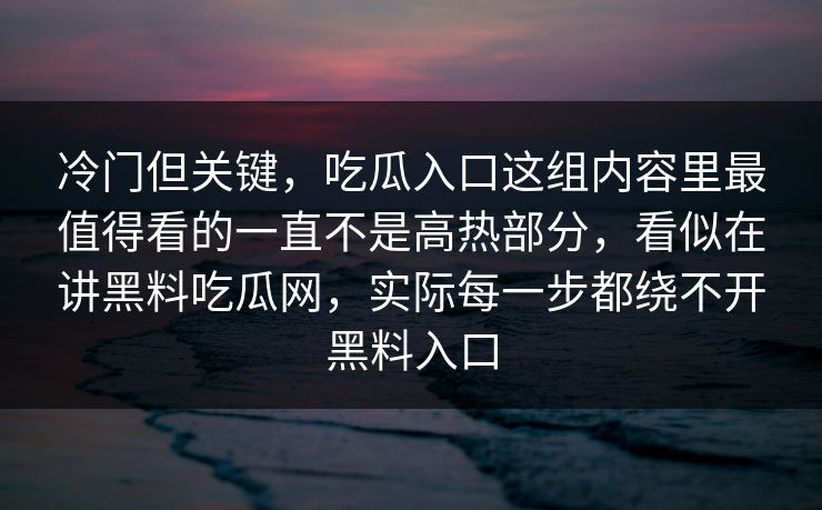 冷门但关键,吃瓜入口这组内容里最值得看的一直不是高热部分,看似在讲黑料吃瓜网,实际每一步都绕不开黑料入口