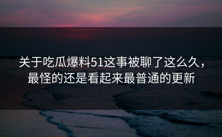 在某一天的晚间,一个普通的网友发布了一条简单的更新:“今天又看到51的新动态,这事被聊了这么久,最怪的还是看起来最普通的更新。”这条看似平常的更新,却在几小时内迅速引发了大量的评论和转发。为什么这条简单的信息能够引起如此大的反响呢?这正是我们需要深入探讨的问题。